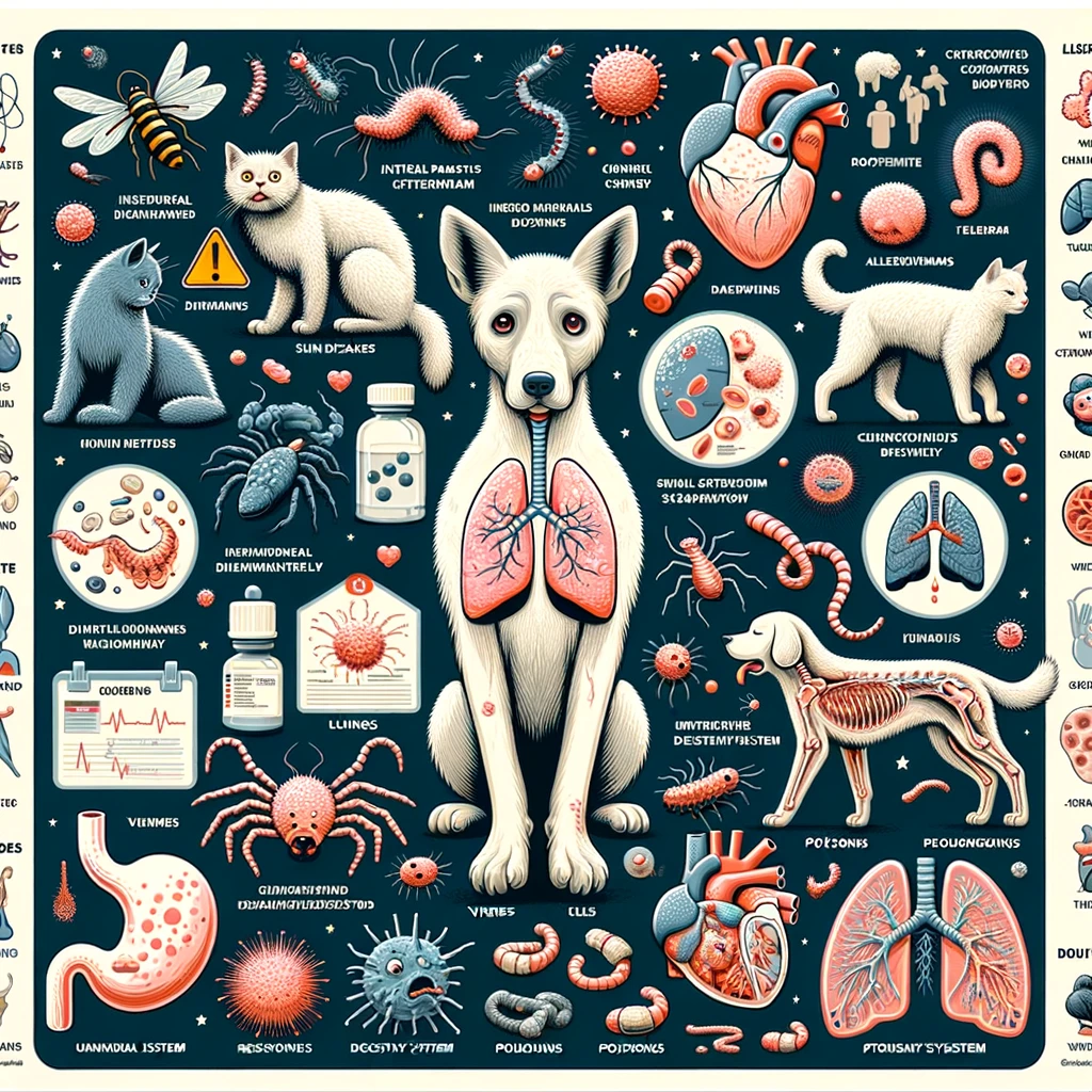 - Parasitic Diseases – Including both internal (like roundworms, tapeworms) and external parasites (fleas, ticks).